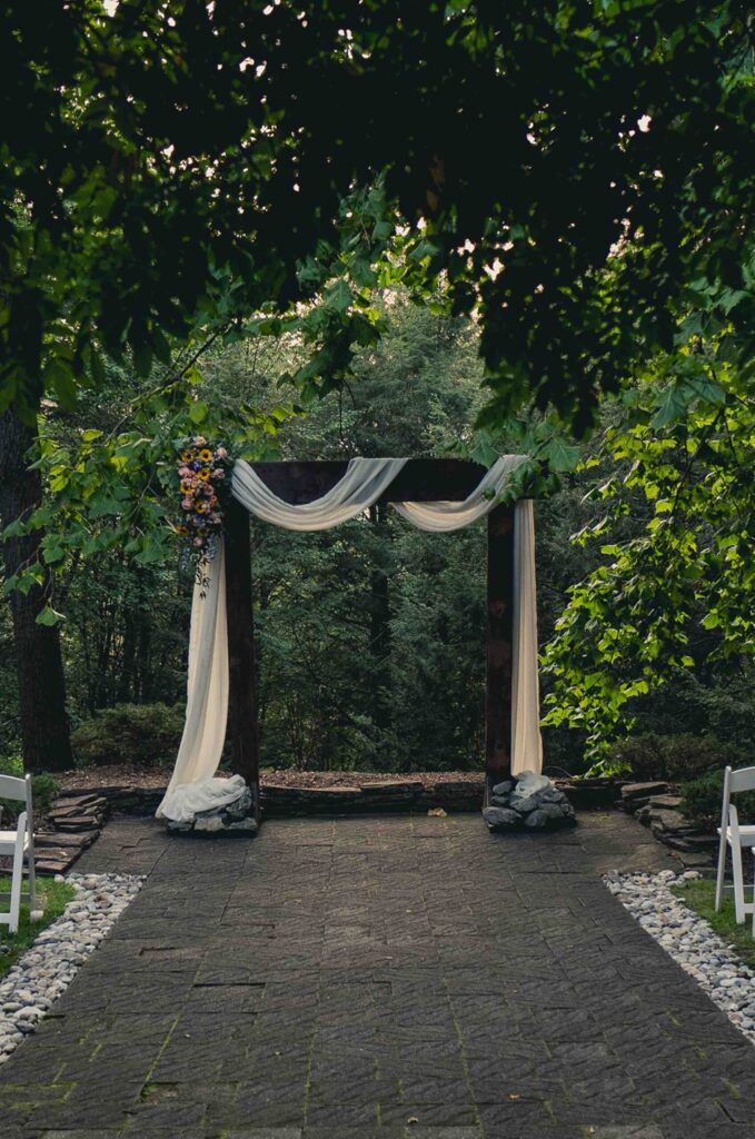 An enchanting wedding venue in its grand manor. Guests will gather for the ceremony in the Auradell Grotto overlooking Stroudsburg.